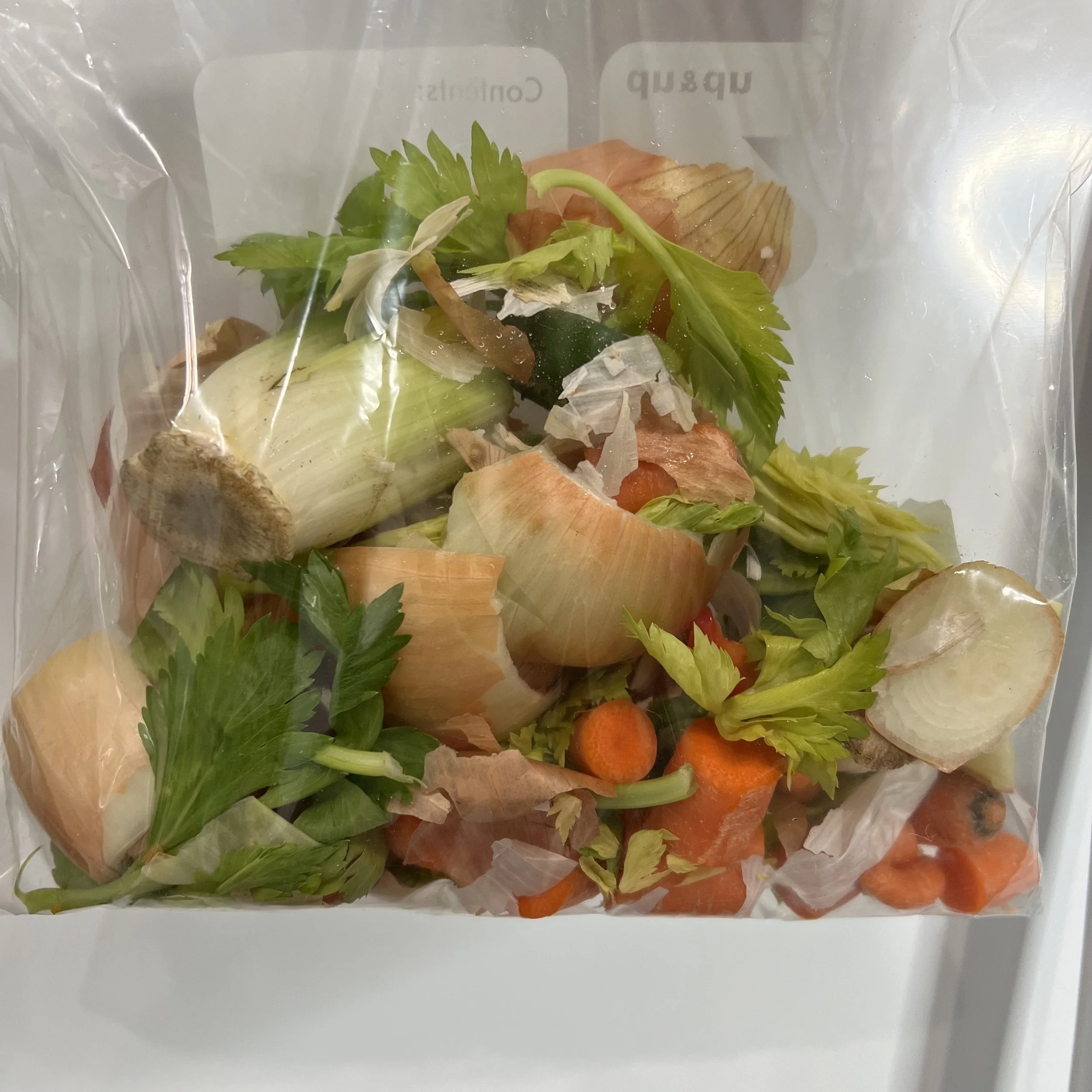 - 1 gallon freezer bag of vegetable scraps