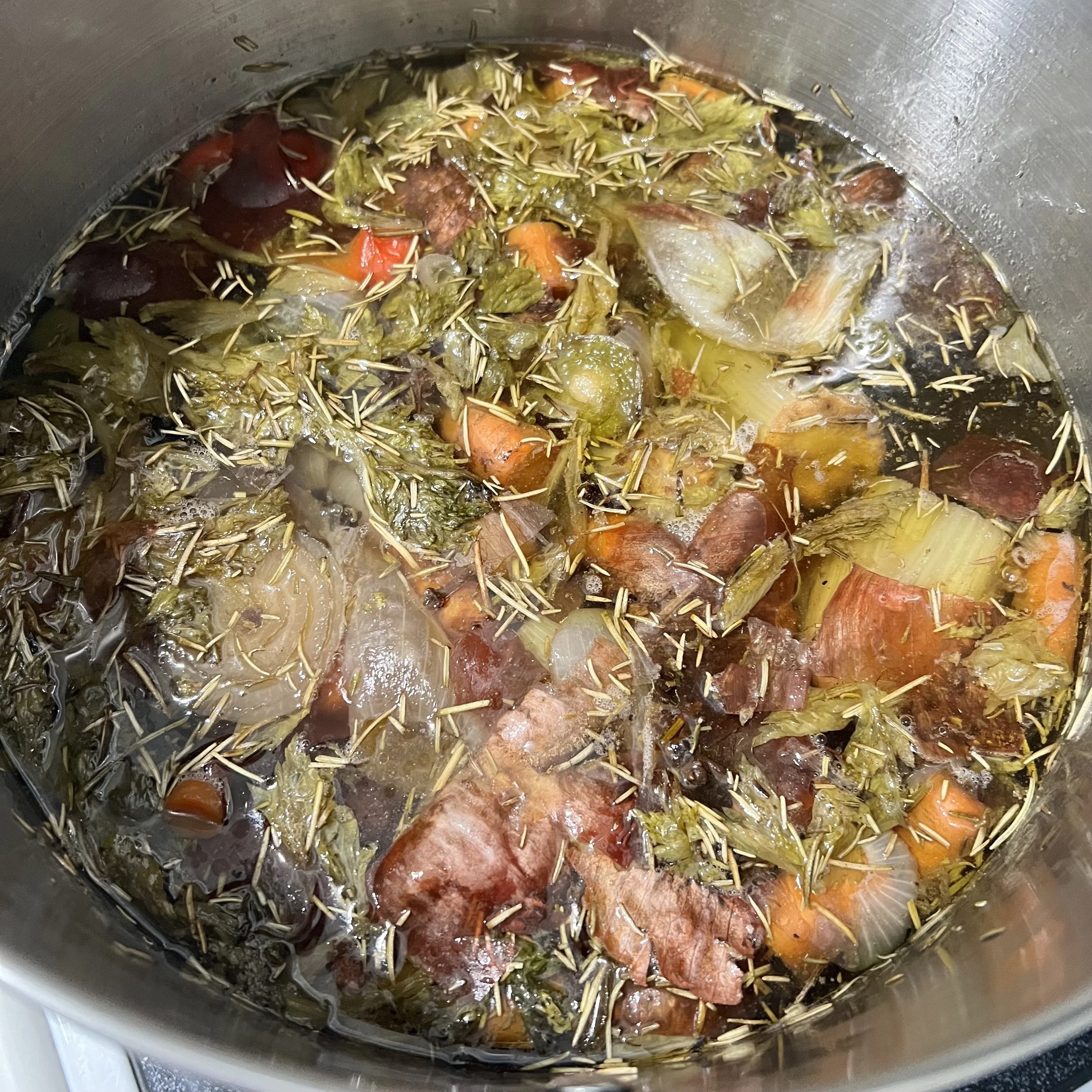 We’re doing that for a reason: we are making a broth that isn’t just designed to taste delicious, it’s meant to nourish your body and provide all of the vital fats, oils, and other nutrients that are found in every fiber of bone and vegetable you’re putting in the pot.